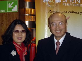 【明慧网二零零九年七月十三日】(明慧记者李慧容智利圣地亚哥综合报导)七月十一日晚,当天幕上苍宇洪穹中,层层布满了真善忍的巨轮,最后打出“了解真相是得救的唯一希望”时,智利首都圣地亚哥Teatro Teleton剧院全场观众掌声雷动。这是神韵巡回艺术团在智利的第二场演出。美妙华彩的服饰、金碧辉煌的天上仙境,及创意无限的中国古典舞编舞,给智利观众带来全善、全美的中华神传文化底蕴的同时,也令华人观众感到欣喜不已,并感到作为中国人倍感荣耀。 驻智利台北经济文化办事处主任柯吉生夫妇一同观看了神韵演出 |