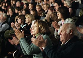 【明慧网二零零九年七月二日】(明慧记者黄凯莉布宜诺斯艾利斯报导)二零零九年七月一日晚,神韵艺术团在布宜诺斯艾利斯Auditorio Belgrano剧场的第四场演出再度满场,观众叫好连连,许多观众表示,来之前并没有想到会这样彻底地接受一种全新的外来文化,这其中包括驻阿根廷的政府官员、外国使节、金融界、艺术界等各界人士。 二零零九年七月一日晚,神韵艺术团在布宜诺斯艾利斯Auditorio Belgrano剧场的第四场演出再度满场。 |