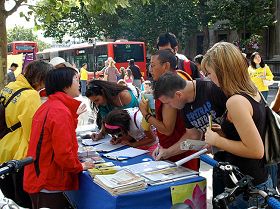 在圣马丁广场,人们纷纷签名谴责中共迫害法轮功 |