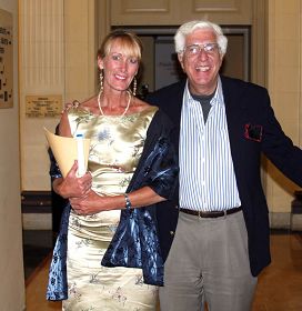 当晚晚会是在观众热情的欢呼声和热烈的掌声中落幕。神韵艺术家以他们精湛的演出征服了所有在场观众,许多观众起立鼓掌,掌声经久不息。投资企业家Fred Atimaia就是其中一位,在欣赏完这场演出后,他深深爱上了中华文化。 Atimaia先生说:“这台演出实在太精彩了,难以置信的美。看完了今天的演出,我真想马上去中国看看。”但他不无遗憾地表示:“我知道现在的中国不可能找到这些了。” 在接受大.纪.元;记者采访时,Atimaia先生情绪激动,兴奋之情溢于言表。他难以用语言表达自己内心的惊喜,但一再表示:“一切是那么的美妙动人,太不可思议的美,无论舞蹈、服装、背景还是音乐,都棒极了!” 他还表示,男子群舞《大唐鼓吏》最棒,这个舞蹈具有非凡的震撼力。他还谈及神韵艺术团乐队,他说:“中西乐器的完美融合,真是绝了,出乎我想像的好。” Atimaia先生最后表示,神韵艺术团明年在波士顿演出时,要带住在那里的女儿一同来欣赏。 “神韵女高音是最棒的歌唱家” 多家大公司董事会成员的亚特金斯女士非常熟悉中国文化,一九八二年就到过中国,她还热衷舞蹈及艺术,和丈夫罗伯特是各类文艺演出的常客。 她难以相信神韵的演员是生长在北美的华人,感叹他们将中国传统文化表现得如此淋漓尽致。她表示,自己在包括纽约百老汇在内的剧院里听过很多著名歌唱家的表演,但神韵女高音姜敏是所有这些歌唱家中最好的。 亚特金斯女士还赞叹演员的舞姿尽善尽美,“柔若无骨”又难度极高,“她们舞动的扇子让人联想到春天的花,真的非常生动!”  文艺演出的常客亚特金斯女士和丈夫赞美神韵 |