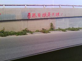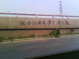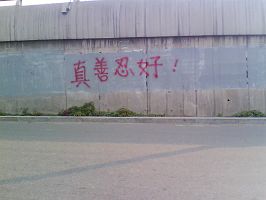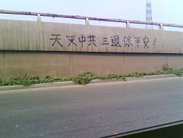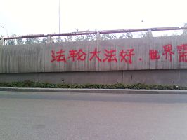 大前天十月八日报道,广州天河区法轮功学员林作英本月七号在华南理工大学发真相资料时被不明真相世人举报,遭到广州天河公安五山派出所恶警绑架,现被非法关押在广州白云区曾槎路一百八十三号广州市谭岗法制教育学校即洗脑班迫害。上次报道因家属是晚上去送衣物看不太清楚故有些地方要纠正。 洗脑班办公室电话 020-86256775,其它情况待查。 照片:河北唐山真相标语