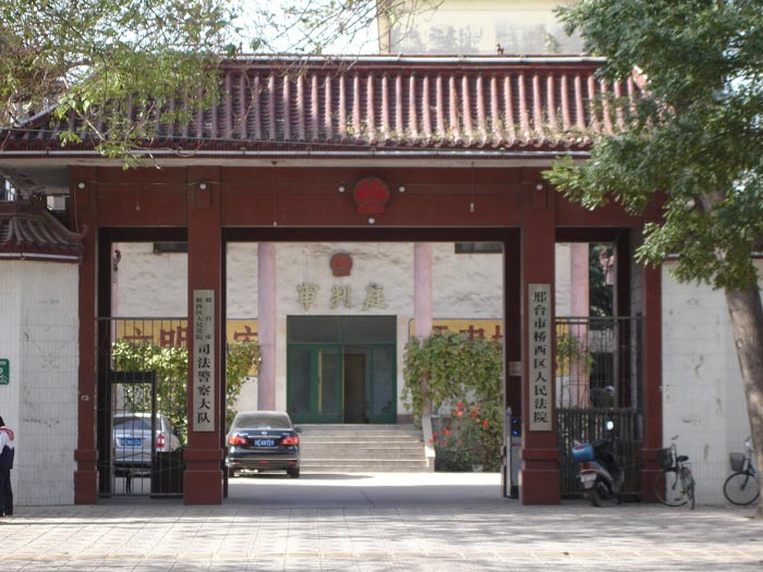 在桥西区法院立案未果。十月二十一日,张广才家人到邢台市中级法院立案,在门口排队挂号被搜身后走入立案大厅。当门卫知道他们是法轮功学员时慌了手脚,警卫队队长带一伙法警冲进立案大厅横加干涉。张广才家人据理力争,立案庭庭长许易然只得电话邀请行政庭庭长苏天志来处理此事,苏天志劝张广才的家人不要立案打官司,要他们到政府部门申请行政复议。张广才家人坚持要以法立案,苏天志急忙走脱。  邢台市中级法院 |