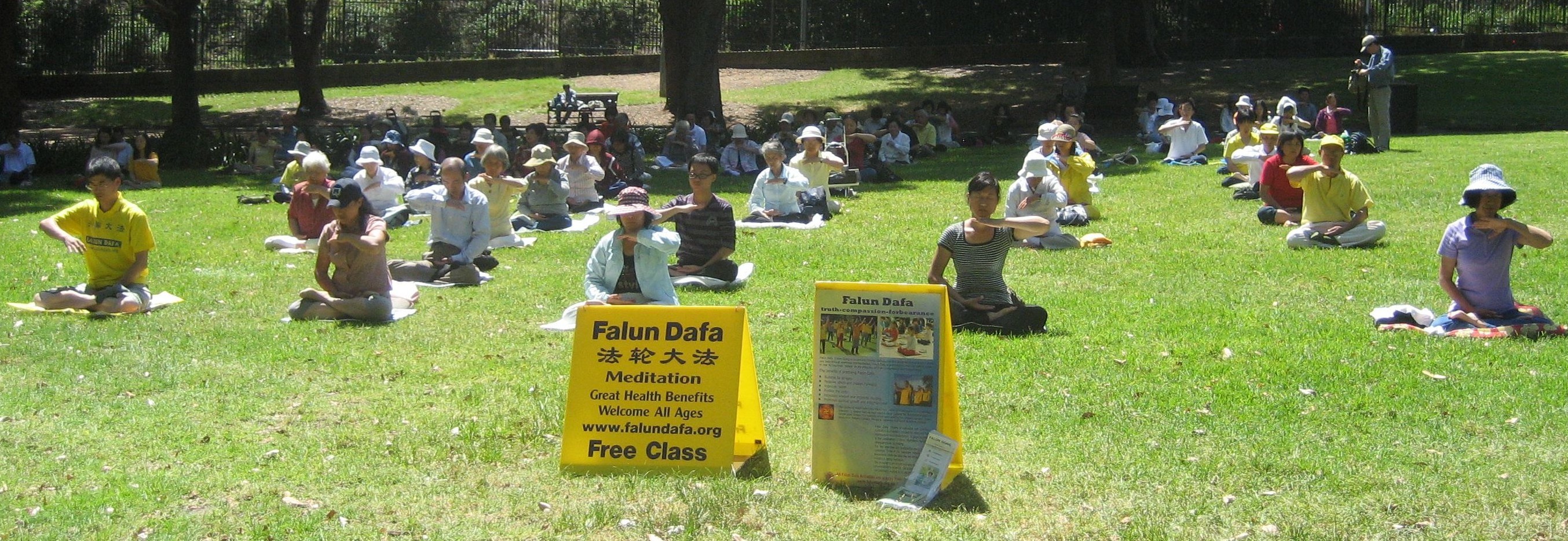 来自中国山东省的赵先生一直注视着炼功场面,他对学员说:“我是一个普通人,出于良知,我一直都很关注法轮功团体,首先我对法轮功有一种敬意,在这物欲横流的世界里还有这么一群人能为了追求自己的信仰而坚持着,真是难得。你们这种坚韧的精神,我是由衷的敬佩。我经常走过唐人街,法轮功学员总是发给我一份资料,那些资料我都看,我从来也没有觉得法轮功有什么不对,人家有信仰的权利,你共产党迫害了人家又不让人家说话,这算什么?人家当然要说话,这是很正常的事情。共产党草菅人命,滥杀无辜,这谁都知道,揭露出来就说人家在搞政治,莫名其妙嘛。我认为人的最高原则就是道义的原则,我绝不会因为任何一个政党而放弃道义的原则。” 一群澳洲西人小伙子经过,有一人走到炼功场地前,向正在打坐的法轮功学员深深地鞠躬,然后高举起他的双手向大家喊着:“圣诞快乐!圣诞快乐!”