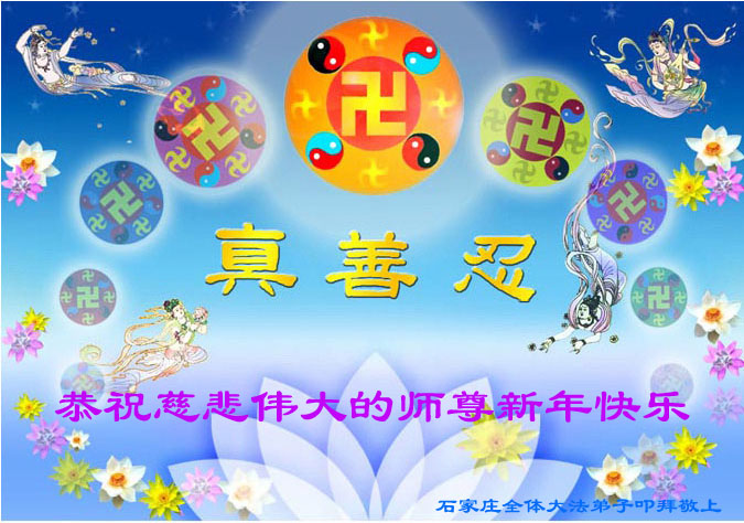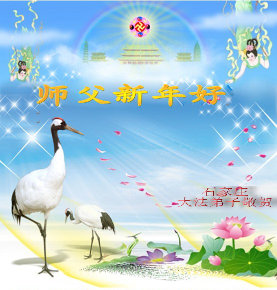 石家庄市一学法点大法弟子向慈悲伟大的师尊恭祝新年快乐!