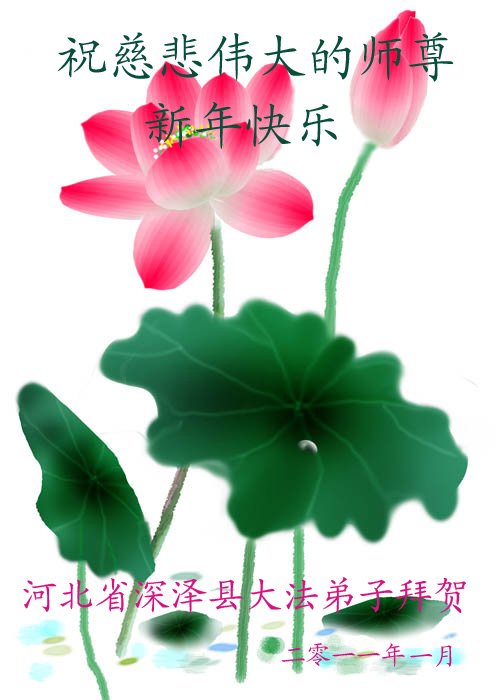 师父辛苦了!在新的一年里,我们一定更加精進,继续做好三件事,兑现自己的史前誓约,圆满随师还。 二零一零年十二月二十八日 河北省深泽县大法弟子祝师尊新年好!