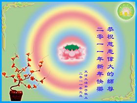 弟子们一定牢记师尊的教诲,在新的一年中修好自己,救度众生,完成我们来世的誓愿,圆满随师还。 2010年12月19日 河北大法弟子心明祝师尊新年快乐!