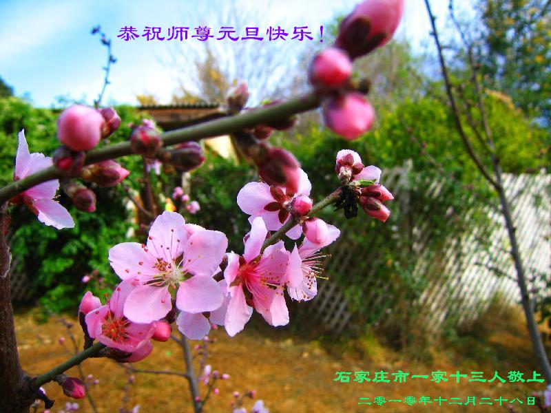 新的一年即将来到,感谢师父的慈悲苦度,恭祝师父新年快乐! 石家庄柳杨街大法弟子祝师父新年快乐!