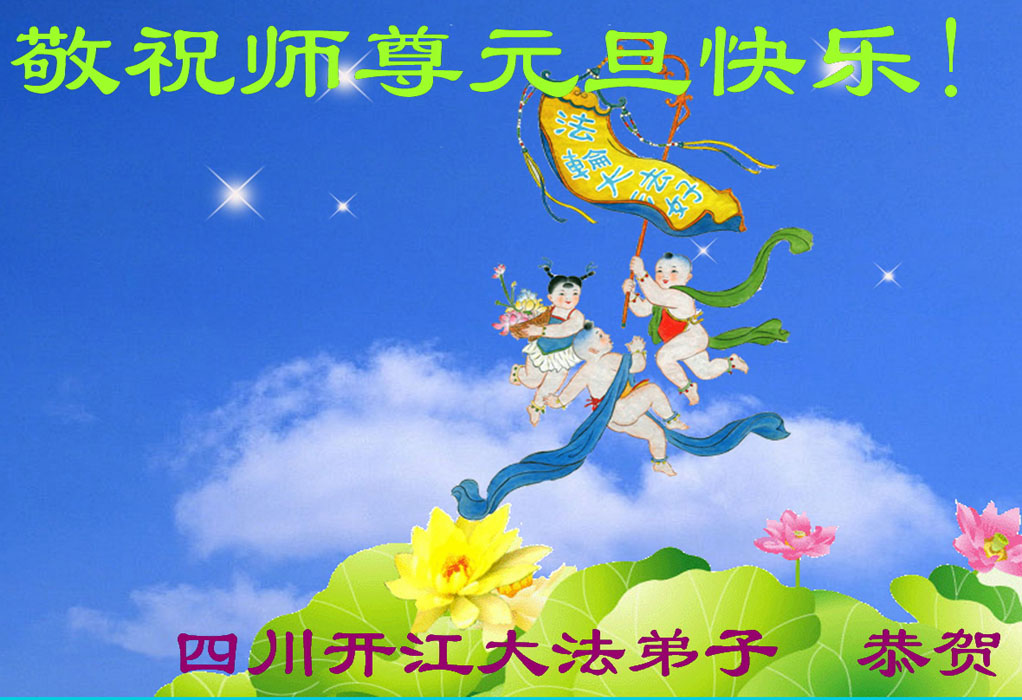 四川仁寿县全体大法弟子不辜负师尊的期望,更加精進完成三件大事。 四川省绵竹市全体大法弟子祝伟大慈悲的师尊新年快乐!
