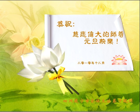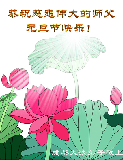 成都大法弟子恭祝慈悲伟大的师尊新年快乐!