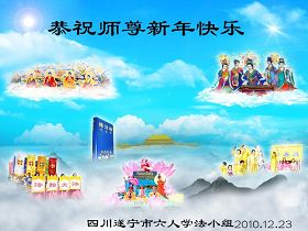 在新的一年里,我们会一如既往做好三件事,不辜负师尊慈悲苦度。 六盘水大法弟子敬上 二零一零年十二月二十八日 重庆市沙坪坝区大法弟子恭祝慈悲伟大的师尊新年快乐!