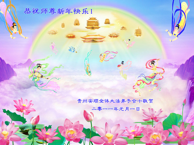 在新年到来之际,我们以最崇敬、最诚挚的心向尊敬的师父致以崇高的敬礼和问候!在新的一年里,我们一定相互配合,整体提高,做好大法弟子应该做好的三件事,走好最后的路,跟师父回家。 贵州大法弟子 2010年12月15日 贵州安顺全体大法弟子恭祝师尊新年快乐!