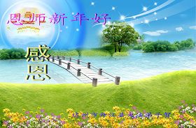 师恩浩荡正大穹 佛光普照天地新 十八年风雨路漫漫 法徒精進志不移 明法理 懂修炼 灭烂鬼 去执著 助师正法了洪愿 弹指一瞬间 沧桑正道路不远 唯有精進谢师恩 2010年12月21日 重庆市全体大法弟子恭祝师尊元旦快乐!