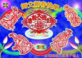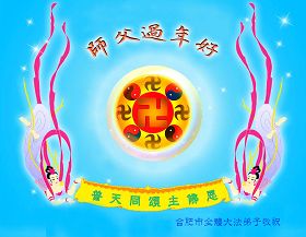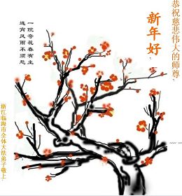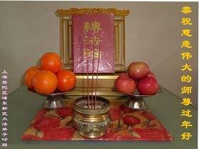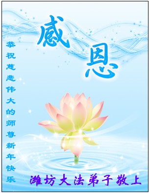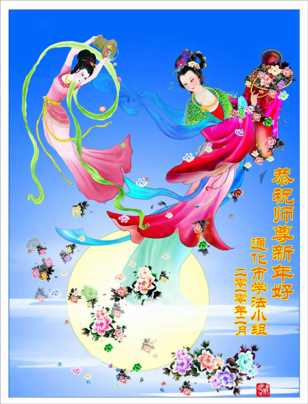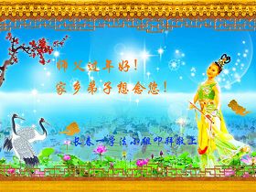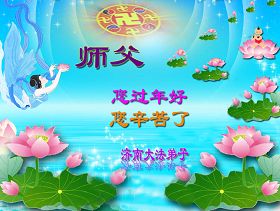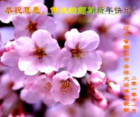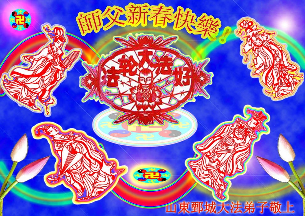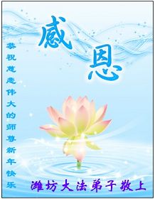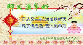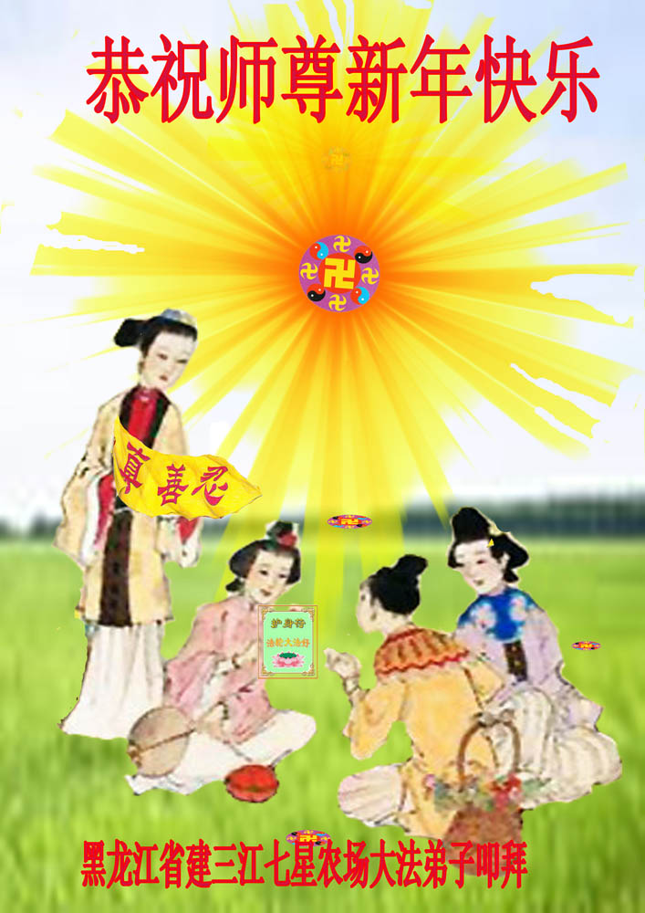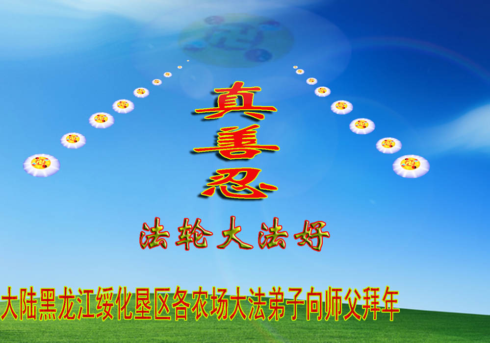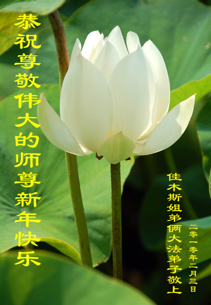 【明慧网二零一零年二月十三日】黑龙江双城全体大法弟子恭祝伟大师尊新年快乐!哈尔滨市道外区大法弟子祝师父新年好!谢师恩 新春佳节又来临 献上弟子真挚心 信师信法意志坚 叩拜师尊救度恩 助师正法在人间 除尽烂鬼光明显 历经魔难救众生 勇猛精進志向前 哈尔滨市道外区大法弟子 上海市全体大法弟子向师父问新年好!上海普陀区浦东新区恭祝慈悲伟大的师尊新年好!长春一学法小组大法弟子想念师父!祝师父过年好!江苏南通大法弟子祝师父新年好!潍坊大法弟子恭祝师尊新年快乐!我们潍坊全体大法弟子,一定在新的一年里发挥整体力量,走好最后正法修炼的路,救度更 多的众生,圆满随师还。恭祝师尊新年好! 潍坊大法弟子敬贺 2010年2月1日 山东蓬莱全体大法弟子祝师父过年好!黑龙江省前进镇大法弟子向师父问新年好!辽宁东港全体大法弟子向师父问新年好!辽宁黑山全体大法弟子向师父问新年好!大庆乐园一家三代大法弟子祝师尊新年快乐辽宁盘锦市大洼县大法弟子祝师尊新年快乐辽宁盘锦市兴隆台区大法弟子祝师尊新年快乐黑龙江省建三江七星农场大法弟子祝师尊新年快乐佳木斯姐弟俩大法弟子恭祝尊敬伟大的师尊新年快乐!佳木斯中部大法弟子祝师尊新年快乐!山东鄄城大法弟子叩拜师尊!恭祝师尊新年快乐!弟子替得救的众生谢谢师尊!浙江临海市全体大法弟子恭祝慈悲伟大的师尊新年好!请师尊放心,我们一定会踏踏实实的做好三件事,记住师尊“修炼如初,必成正果”的教诲,让师尊多一份欣慰,少一份操心。 伊春市美溪全体大法弟子恭祝师尊新年快乐!黑龙江绥化垦区各农场大法弟子给师父拜年!宝清县全体大法弟子恭祝师尊过年好!安徽省合肥市全体大法弟子祝师父过年好!师尊传大法,度众回真家。 历尽万魔拦,辛苦走天涯。 十年消恶急,四海播莲花。 新宇春将到,洪恩耀彩霞。 安徽省肥西县全体大法弟子恭祝师尊过年好!通化市学法小组:叩拜师尊过年好!恭祝师尊新年快乐!溶于法中 学法小组暖容容 圆容师尊之所要 修炼法宝向内找 心性升华去执著 同修如镜看自己 慈悲宽容去妒嫉 俩俩配合讲真相 救度众生抢时间 学法救人发正念 完成誓约随师还 二零一零年二月三日 济南大法弟子恭祝师尊过年好!辽宁省鞍山市全体大法弟子恭祝慈悲伟大的师尊新年快乐!长春大法弟子祝贺师尊新年快乐! 抚顺市母女二人叩拜伟大的师尊新年好!大连市金州区大法弟子及家属祝师尊过年好!乳山全体大法弟子及朋友恭贺李洪志大师新年好!师父您辛苦了! 您对弟子的慈悲苦度,弟子们无以回报。 乳山全体大法弟子决心在新的一年里,多学法,修好自己,放下自我,坚定实修,形成一个圆容不破的整体。努力做好三件事,助师正法,完成大法弟子的历史使命,决不辜负师父的慈悲苦度。 乳山大法弟子未修炼的亲人及身边未修炼的邻居朋友23人恭贺李洪志大师新年好! 吉林市全体大法弟子恭祝师尊过年好!辽宁海城全体大法弟子恭祝慈悲伟大的师尊过年快乐!在新的一年里,我们一定不辜负师尊的浩荡慈悲,不辜负正法修炼的万古机缘,坚定正念,坚持实修。加倍努力做好三件事,救度更多的众生,完成我们的史前誓约。 正念正行 忍苦兑誓约,邪魔阻归步。 心中明天机,脚下路自通。 慈念清乾坤,净行正法路。 莲笑叩师恩,法船众生度。 辽宁海城全体大法弟子庚寅年新春敬上 公主岭全体大法弟子在虎年来临之际,向伟大的师尊道一声:师父您辛苦了,师父虎年吉祥!时光飞逝如穿梭,踏平险恶去执著。 唯愿师尊少操劳,坚定实修苦中乐。 万古洪愿今生了,法船悠悠鸣声迫。 紧随师尊正大法,他日回家定有我。 山东乐陵一家三口大法弟子向慈悲伟大的师尊问好!我是山东乐陵大法弟子,在 二零一零年新年到来之际,我们一家三口向慈悲伟大的师尊问好!跪拜师尊,在新的一年里我一定要做好三件事,让师尊多一份欣慰,少一份操劳。 大连大法弟子恭祝伟大的师父过年好!随师下凡到人间, 千年轮回等今天; 珍惜机缘忙救度, 不负众望誓约现。 大连大法弟子己丑年腊月初七敬上 山东陵县全体大法弟子向伟大的师尊问候新年好!在2010年新年即将到来之际,山东陵县全体大法弟子向伟大的师尊问候! 师父辛苦了!祝师父新年快乐! 在新的一年里,弟子们牢记师父的嘱托,做好三件事,勇猛精進,不辜负师尊的期望,跟师父圆满回家. 吉林市一学法小组大法弟子祝师尊新年快乐!上海一家庭学法小组全体大法弟子祝师尊新年快乐!大连大法弟子恭祝慈悲伟大的师尊过年好!成就师尊的宏愿,助师正法;感恩师尊的慈悲救度,修好自己,救度众生;坚定的信师信法,做好三件事,圆满随师还。 合十 大连大法弟子叩拜 2010年2月3日 沈阳大法弟子全家三口给师父拜年!祝贺慈悲伟大的师父过年好!弟子们想您!吉林省浑江市老年大法弟子敬祝师父过年好!我是老年大法弟子,今年九十岁,有幸得大法,是师父给了我第二次生命,感谢恩师的慈悲苦度。 吉林省浑江市老年大法弟子敬贺 二零一零年二月一日 山东大法弟子向慈悲伟大的师尊问好!祝师尊新年愉快!安徽黄山大法弟子给师尊拜年!恭祝师尊新年好!看神州 神州转法轮,传心亿万人 善者喜得法,邪恶妒嫉生 帽子如天大,谎言编的“真” 到处乱抓捕,诬害善功民 救星被构陷,黑云欲压城 妖邪以为能,造孽罪恶深 他日善恶报,恶蟾点油灯 新宇春回日,普