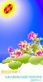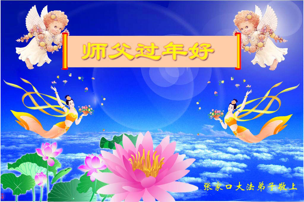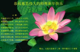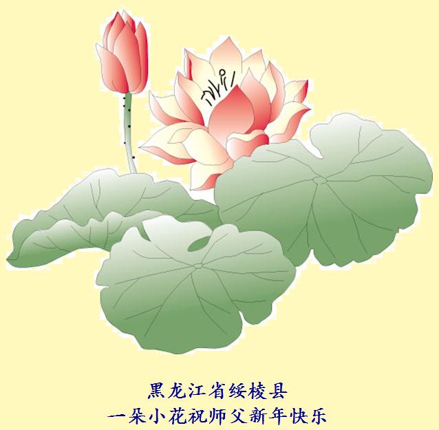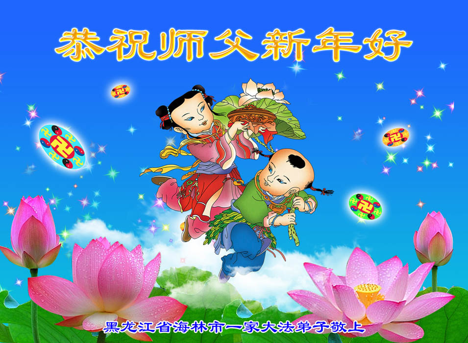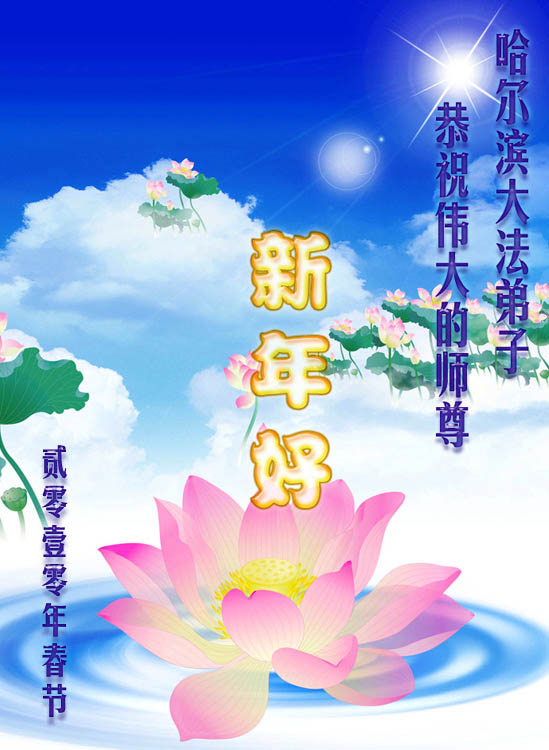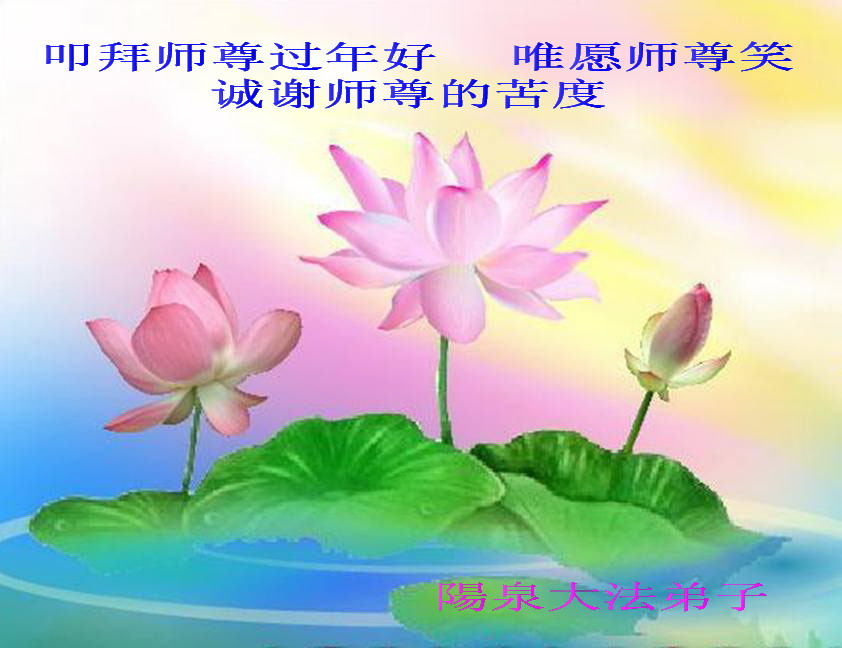 【明慧网二零一零年二月十五日】青海省全体大法弟子恭祝师尊过年好!菏泽大法弟子恭祝慈悲伟大的师尊新年快乐!大港全家六口大法弟子恭祝伟大的师尊新年快乐!黑龙江省海林市一家大法弟子敬上冬雪迎春莲花笑,众生渐知大法好。 雪清尘埃邪恶倒,金光神护恶莫扰。 优昙盛开真相到,藏字石中神明告。 师护弟子归云霄,圆满回家师恩报。
