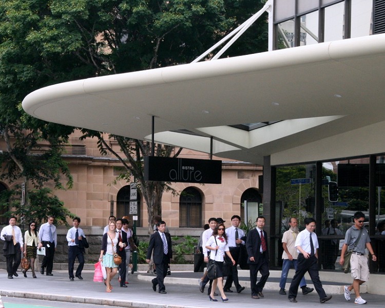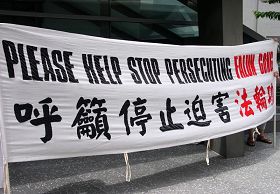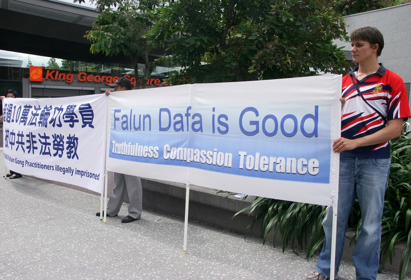 【明慧网二零一零年二月二十二日】二零一零年二月十八日下午,一百二十名重庆市政府代表团员,在澳洲布里斯本Sebel饭店,与布里斯本市长纽曼重新签署姊妹城市协议。昆士兰法轮功学员在饭店外高举横幅,将中国法轮功学员所遭受的迫害真相传递给该代表团。 澳洲布里斯本法轮功学员于向120名重庆市政府代表团员传递真相 |