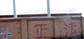 文/大陆大法弟子 启慧 此图片所拍摄的“法轮大法是正法”七个字是写在大陆黑龙江省某市市郊的一个工厂的后墙上。从照片上可以看出每个字有一米多高,总长十米左右,字体为深红色。这幅标语还真有些神奇。 一、这幅标语是2000年初,由大法弟子写上去的。当时的年代,那是邪恶迫害最为疯狂的时期。到现在已十年过去了,在这十年中,大法弟子们前仆后继,冒着被抓、被劳教、被判刑的危险在大街小巷、街头巷尾写下了无数的“法轮大法好”、“法轮大法是正法”的标语。可是,大多被邪恶们弄掉或涂抹掉了,唯独这则大标语却没有受到任何的污染和破坏,这里是邪党控制的重点区,这几乎是不可能的,这难道不神奇吗? 二、这则“法轮大法是正法”标语是2000年写上去的。十年过去了,十年的风吹雨淋,十年的酷暑严寒,这几个字至今仍然象刚写上去的一样鲜明、亮丽;图片上的“是”字是当时写的比较浅,后来,大法弟子半夜里又用其它颜色的油漆补了一遍。这难道不神奇吗? 三、许多当地的居民都明白法轮大法真相,摒弃邪党。每当人们从道旁经过看到这幅标语时,都从内心升起对法轮大法及大法弟子的一份敬意。 讲真相小记