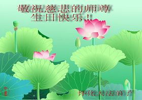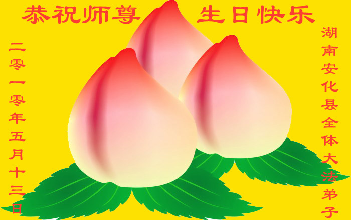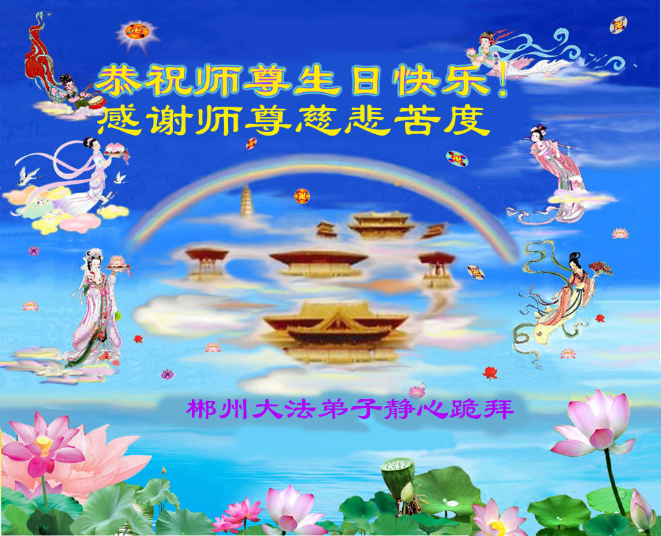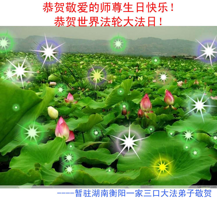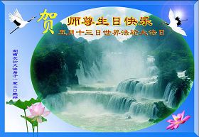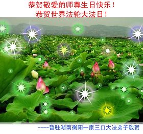 千言万语汇成一句话,师尊您辛苦了……。多学法,正念足,事事向内找,整体配合好,让师尊少一份操劳。合十 河南省南阳一学法小组大法弟子 南阳偏远地区大法弟子恭祝师尊生日快乐!共庆法轮大法日!河南省三门峡全体大法弟子恭祝师尊生日快乐!庆贺第十一届世界法轮大法日!江西大法弟子恭祝慈悲伟大的师尊生日快乐!贺世界法轮大法日!河南大法弟子祝贺伟大师尊生日好!庆贺世界法轮大法日!湖北省武穴市大法弟子祝贺世界法轮大法日!怀化市全体大法弟子恭祝慈悲伟大的师尊生日快乐!怀化市一学法小组全体大法弟子恭祝慈悲伟大的师尊生日快乐!湖北襄樊大法弟子恭祝师尊华诞暨世界法轮大法日!