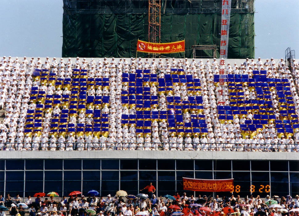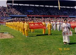 | 【明慧网二零一零年五月十二日】(明慧网世界法轮大法日征稿选登)1998年8月,在沈阳举办了亚洲体育节。体育节由亚洲体育联合会主办、沈阳市政府承办,旨在推广、弘扬古老而神奇的气功健身方法,造福人类。8月20日上午在沈阳市人民体育场举行了盛大的开幕式,25个功法受邀参加,法轮功也是其中之一。 8月20日清晨大概5点多钟,我们就来到了体育场外,其他功法的人员也陆续来到。由于时间尚早,法轮功学员们就静静地站着等候,有的拿出随身携带的大法书籍读书,这与其它功法喧闹、兴奋的情景形成了鲜明对比。后来有学员组织大家集体炼功。大概7点左右,各功法作为观众的学员首先进入体育场,在看台上坐好,1500名法轮功学员排成了“法轮功”三个大字,壮观醒目。上午9时,开幕式正式开始,各功法代表队入场,并进行了功法表演。由几十名大法学员组成的法轮功方队穿着黄色的炼功服入场,并表演了舒缓优美的动功。退场后回到看台上,又接着表演了静功。开幕式共进行了6个小时,当时正值盛夏,烈日当空,大法弟子在水泥看台上始终整齐端坐,没人东倒西歪,没人交头接耳,没人随着走动,也没人大声喧哗。许多学员拿出随身携带的《转法轮》等大法书籍读书。多家媒体的记者纷纷到法轮功看台前拍照,有的记者还走上看台采访学员,许多学员谈了炼功后的受益情况。 开幕式后多家媒体进行了相关报道,《中国青年报》于8月28日刊载《生命的节日》一文,报道沈阳亚洲体育节开幕式情况,全文1200余字,其中盛赞法轮功的篇幅达400余字,同时还配发两幅法轮功学员参加开幕式的压题照片。以下为文章中有关法轮功的相关报道:  《中国青年报》1998年8月28日关于沈阳亚洲体育节开幕式的报道及图片 |
