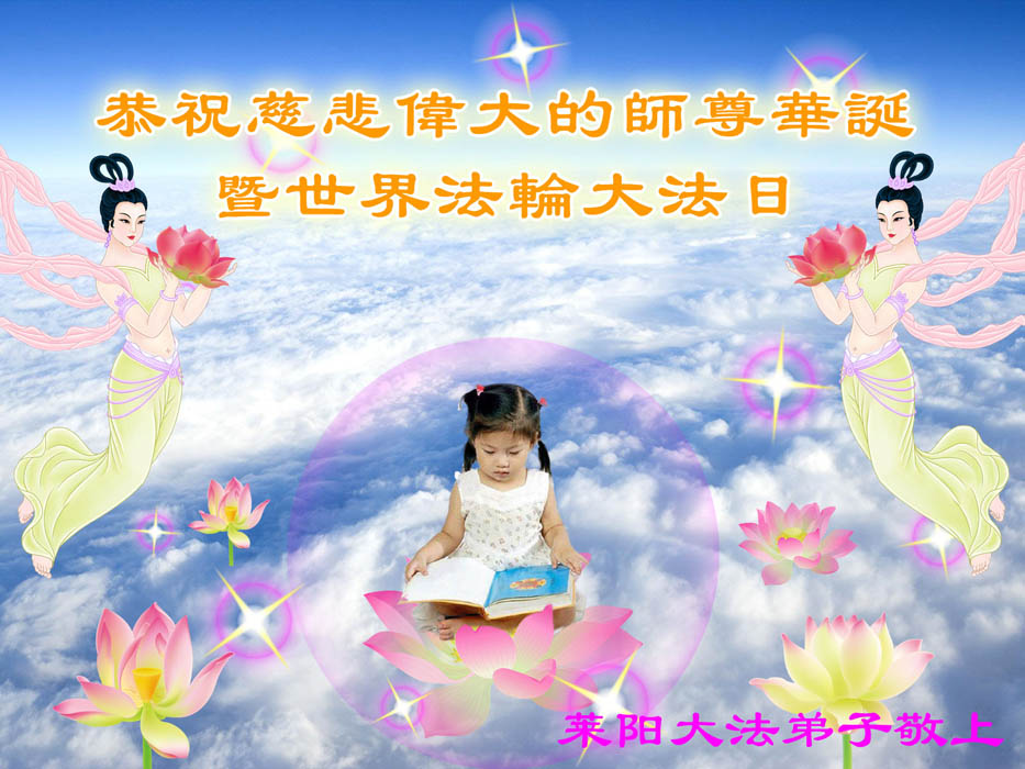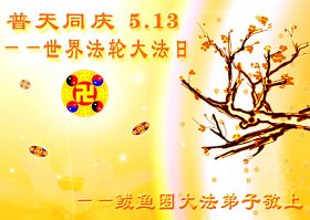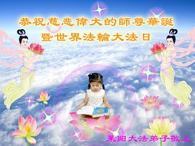 莱州市金城镇城子村大法弟子祝尊敬的师父生日快乐!家人祝师父生日快乐!一个炼功点大法弟子恭祝尊敬伟大慈悲的恩师生日好!衷心感谢恩师在末法暗世之际让我们一个全身业力累累被淘汰的生命得到了不能用价值衡量的救度众生的大法!恩师为弟子们饱受了无以言表的痛苦,承担了弟子们的巨大罪业,使弟子们得以救度。恩师的洪恩无词表达,唯有遵照恩师的教导做好三件事,不管邪风恶浪险阻,持之以恒坚定随师走好最后的路,以报师恩,不负恩师一片苦心与盼望,兑现史前誓约,请恩师放心! 一个炼功点大法弟子的祝愿心声 招远市辛庄镇世人祝伟大的师尊生日快乐!招远辛庄朱宋全体大法弟子祝伟大的师尊生日快乐!明白真相世人向师尊问好!祝伟大的师尊生日快乐!大户荆王家村世人祝伟大的师尊生日快乐!安丘市大法弟子祝贺世界法轮大法日!莱州三元高三世人祝伟大的师尊生日快乐!全体大户大法弟子祝伟大的师尊生日快乐!六位大法弟子祝慈悲伟大的师父生日快乐!蚕庄大法弟子向伟大的师尊问好!祝师尊生日快乐!中国大陆世人祝大法师父生日快乐!招远市辛庄镇东良村全体大法弟子向师父问好!祝师尊生日快乐!大别山大法弟子恭贺师尊生日快乐!师尊生日快乐!并欢庆大法日! 2010.5.5 “世界法轮大法日”冀州市一家五口大法弟子向师尊问好!枣强大法弟子我代表全家五口人向师父合十问好!祝愿师父生日快乐!弟子一定更加努力的做好三件事,不负下世前的洪愿。 枣强大法弟子叩首呈上 大法弟子阔境、法缘、智恒全家以更加精進实修感激伟大师尊慈悲救度!特祝福师尊生日快乐!做好三件事!中原一大法弟子贺师尊华诞!庆祝世界法轮大法日!念师恩,谢师恩,无以言表。再精進,多救人,以慰师心。 中原一大法弟子 在沪打工的大法弟子恭祝师尊生日快乐!师尊您好!在5.13到来之际,感谢师尊慈悲苦度!弟子已经开始背法,精進提高,做好三件事,兑现助师正法的誓约。 在沪打工的大法弟子 2010年5月8日 胶南全体大法弟子祝师父生日快乐!我们有决心有信心做好大法弟子应该做好的三件事,走正师父安排的路,让师父多一份欣慰,少一份操劳。 恭贺世界法轮大法日!沙坪坝区大法弟子恭祝伟大的师尊生日快乐!弟子非常想念师尊!努力做好三件事,兑现自己的史前大愿 昌图大法弟子恭祝师父传法十八周年五月十三日,伟大荣耀的日子,弟子对师父的感恩之心无以言表,我们一定好好的做好师父要求的三件事,更好的救度众生,不负师望。 2010年5月8日 大陆一家六口祝贺师尊华诞快乐!随师行 茫宇历兆劫 已至坏灭空 师尊正万穹 聚焦三界中 王主随师行 入落尘世中 轮回千百世 苦把恩师等 一朝得正法 心身法洗净 誓约在兑现 助师救众生 丰润区大法弟子恭祝师尊生日快乐!恭贺祝世界法轮大法日!请师尊放心,我们一定做得更好,学好法向内找,圆容整体,多救人。丰润区大法弟子敬叩师尊! 栖霞大法弟子一家五口恭祝伟大的师尊生日快乐!在这普天同庆的日子里,弟子千言万语也说不尽对师父的感激之情,唯有做好三件事来回报师尊的慈悲苦度,唯有精進实修才能不辜负师尊的殷切期望。在正法最后时刻,走好、走正师父给我们安排的路,来兑现自己的史前大愿,圆满随师还。 栖霞大法弟子一家五口跪拜 栖霞全体大法弟子恭祝伟大的师尊生日快乐!庆祝世界法轮大法日及正法十八周年!在这伟大特殊的日子里,弟子们非常想念伟大慈悲的师父。请师父放心,我们一定按照师父的要求做好三件事,修好自己,配合好整体,摆好基点救度更多众生,完成历史赋予我们的使命。 华北电网大法弟子祝师尊生日快乐!一百零二岁老年大法弟子恭祝师尊生日快乐!石岛一家四口恭祝伟大师尊生日快乐!恭贺世界法轮大法日!恭贺世界法轮大法日!大陆大法弟子恭贺世界法轮大法日及师父传法十八周年!大法弟子祝贺世界法轮大法日!蒙阴全体大法弟子恭祝师尊生日快乐!公主岭大法弟子庆祝世界法轮大法日!平阴县全体大法弟子恭祝慈悲伟大的师尊生日快乐!高碑店大法弟子庆祝世界法轮大法日!大陆的大法弟子恭祝二零一零年世界法轮大法日!“5.13”世界法轮大法日即将到来。在此,希望全世界的大法同修们能够共同勇猛精進,在此神圣的日子来临之际,普天众生欢庆、欢颂,请师尊放心,大陆的大法弟子一定不负使命,正念正行,助师正法。 罗田浠水全体大法弟子恭祝师父生日快乐!热烈庆贺法轮大法传世十八周年!大陆的大法弟子祝贺祝师尊节日快乐!师尊:在普天同庆世界法轮大法日之际,我代表我受益的家人向师尊致以最诚挚的感谢! 祝师尊节日快乐! 万事如意! 弟子记住师尊的教导: “少息自省添正念 明析不足再精進”(《洪吟二》) 大陆大法弟子 二零一零年伍月玖日 安化大法弟子共祝师父生日快乐!普天同庆法轮大法日!在外打工的大法弟子祝师父生日快乐!一大陆大法弟子祝慈悲伟大的师尊生日快乐!谢谢师父!鱼台县全体大法弟子恭祝慈悲伟大的师父生日快乐!潼南县一家十一名大法弟子恭祝慈悲伟大的师尊生日快乐!定州市全体大法弟子恭祝师父生日快乐!在这普天同庆苍宇更新的伟大时刻,弟子们都在利用各自的便利条件与环境兑现着自己的承诺,都深知所承负的历史责任重大,随师正法,救度众生,这是何等的荣幸啊!也是众生之福。虽然目前还面临很多困难,还有很多世人不明真相,邪恶
