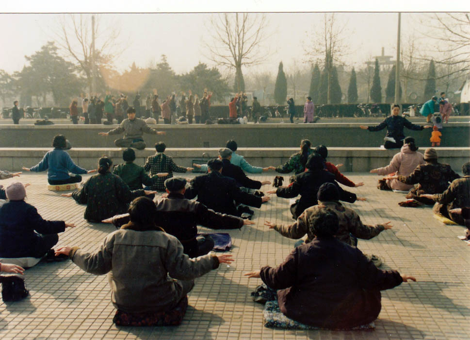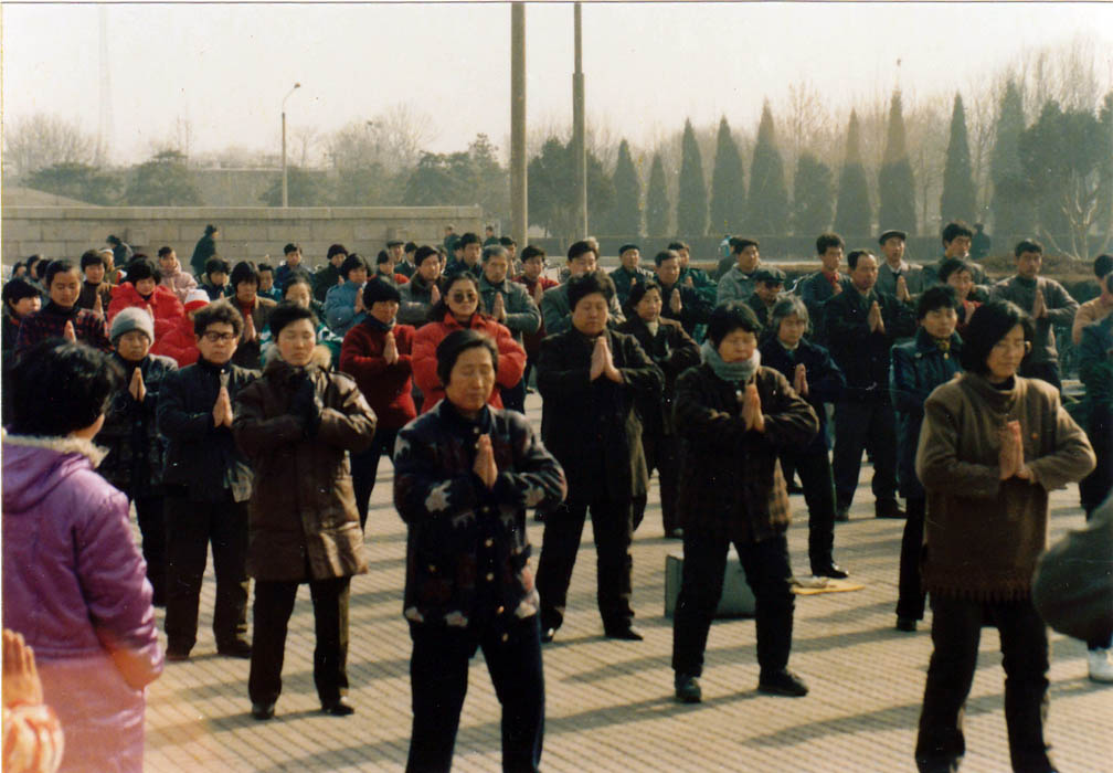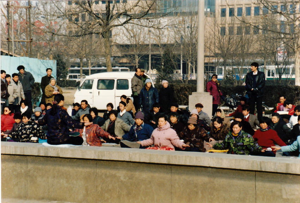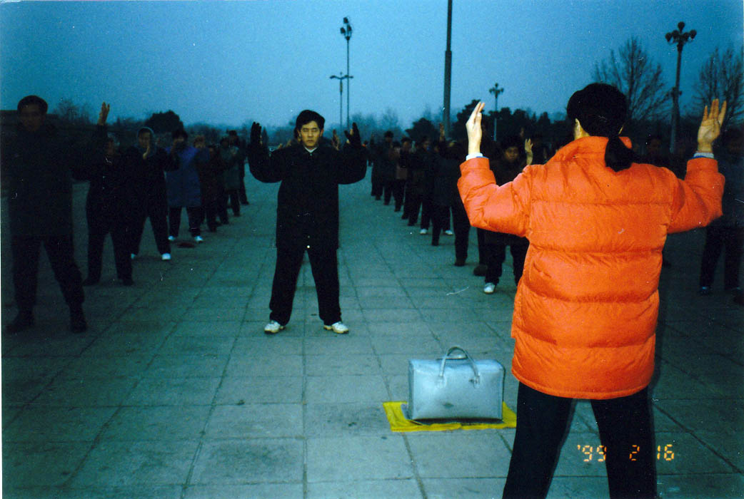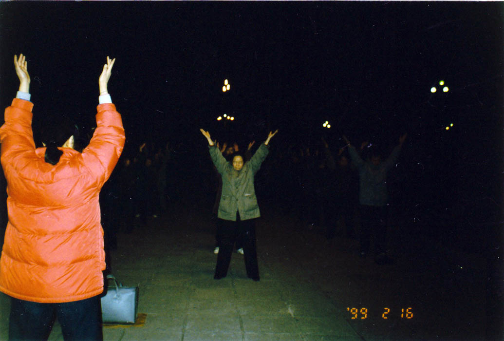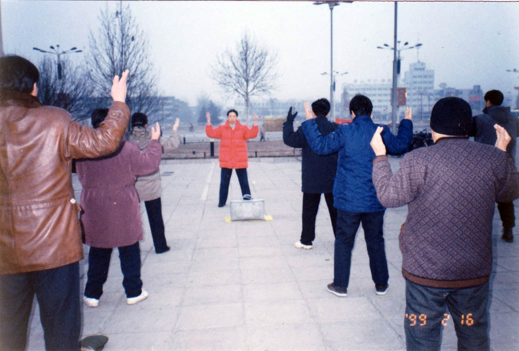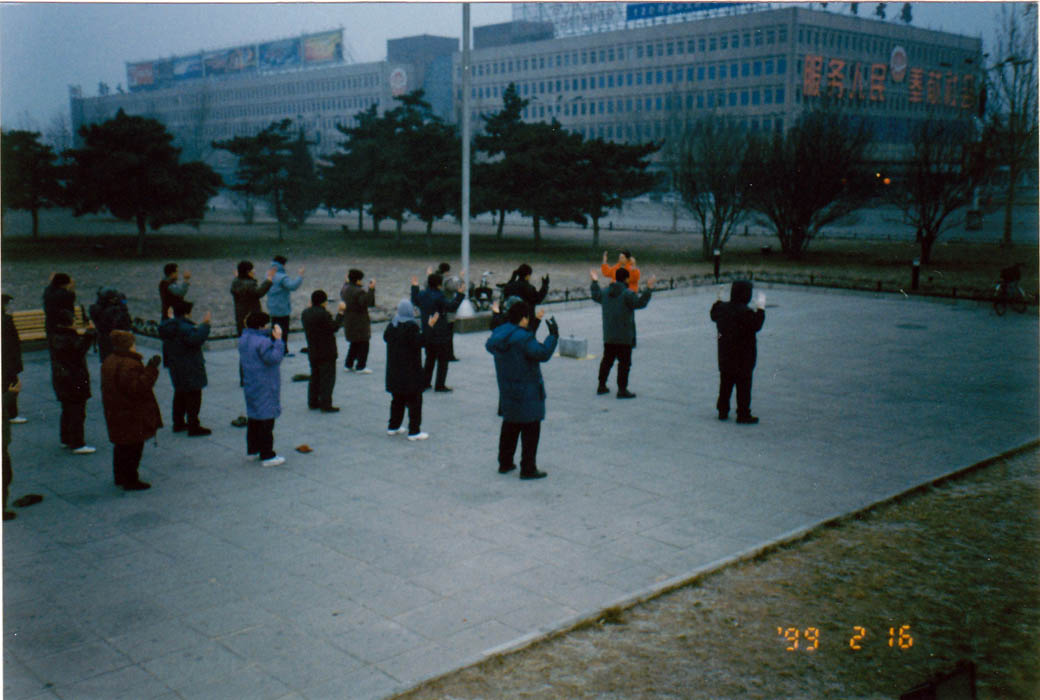 1999年农历新年,法轮功学员在唐山纪念碑广场晨炼