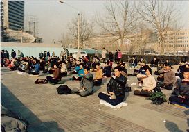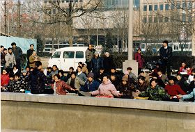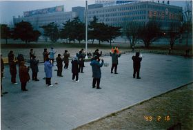 一九九九年七二零以前唐山纪念碑广场炼功一角 |