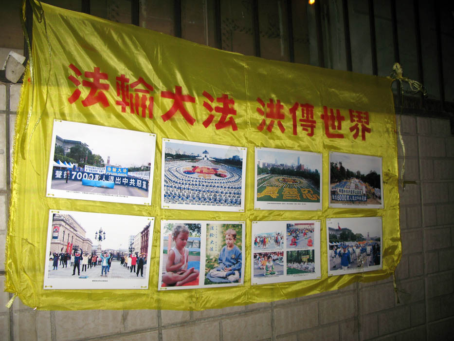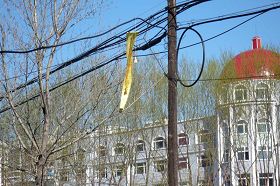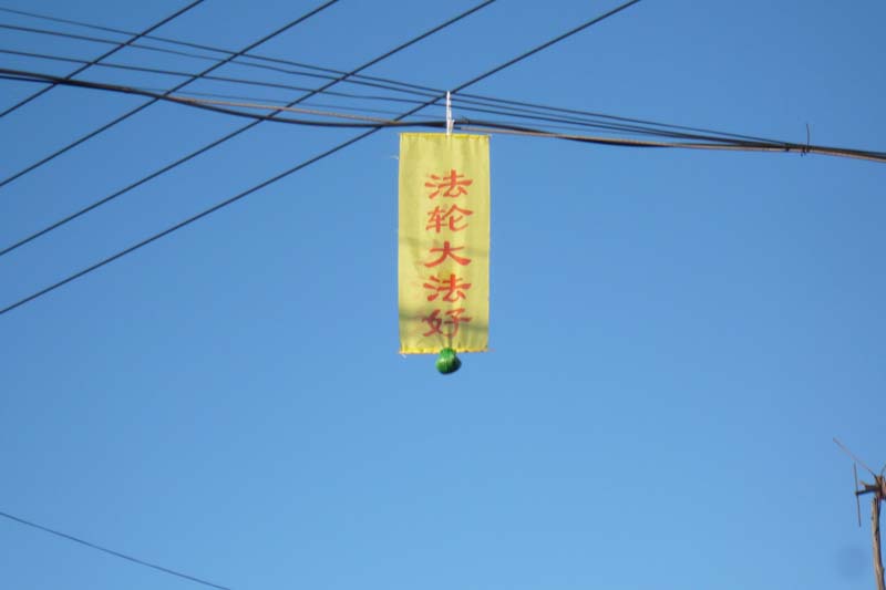五月十三日早晨,真相条幅出现在黑龙江省哈尔滨某地区的大街小巷。这只是其中的几幅。