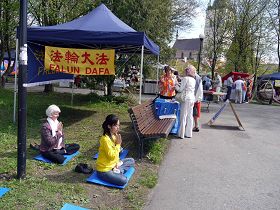【明慧网二零一零年五月十九日】二零一零年五月十五日,芬兰法轮功学员再次被邀请到美丽的邻国爱沙尼亚,参加在爱沙尼亚首都塔林的司弓堡(Skoone Bastion)公园举行的户外展会,向这里更多的人们介绍法轮大法(又称法轮功)的美好,揭露中共十一年来对法轮功学员的残酷迫害。  在爱沙尼亚首都塔林的司弓堡(Skoone Bastion) 公园里,法轮功学员设置展位介绍法轮功 |