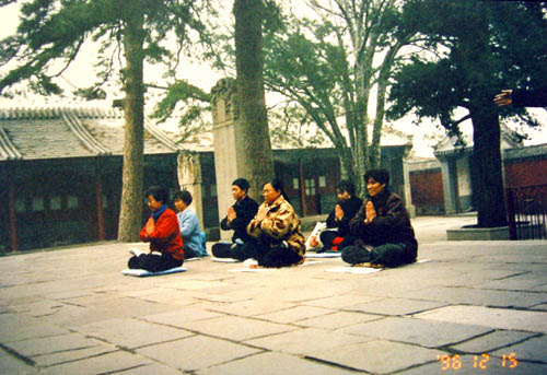 1999年7.20迫害开始前,河北廊坊市大法弟子去北京戒台寺炼功照片