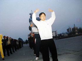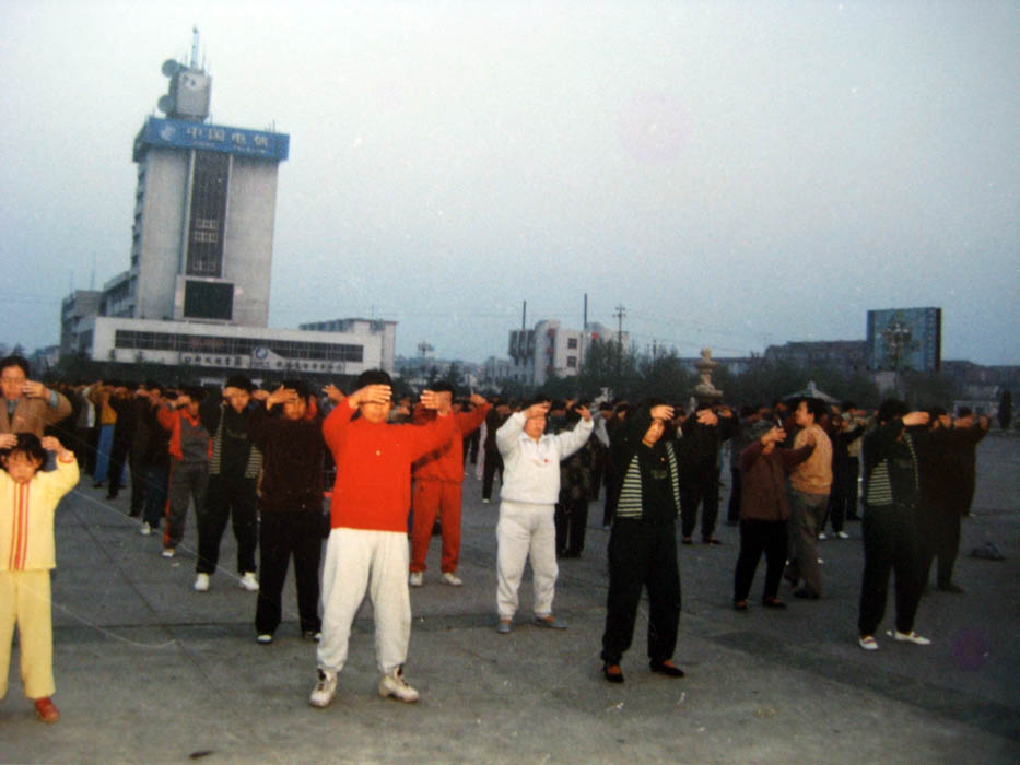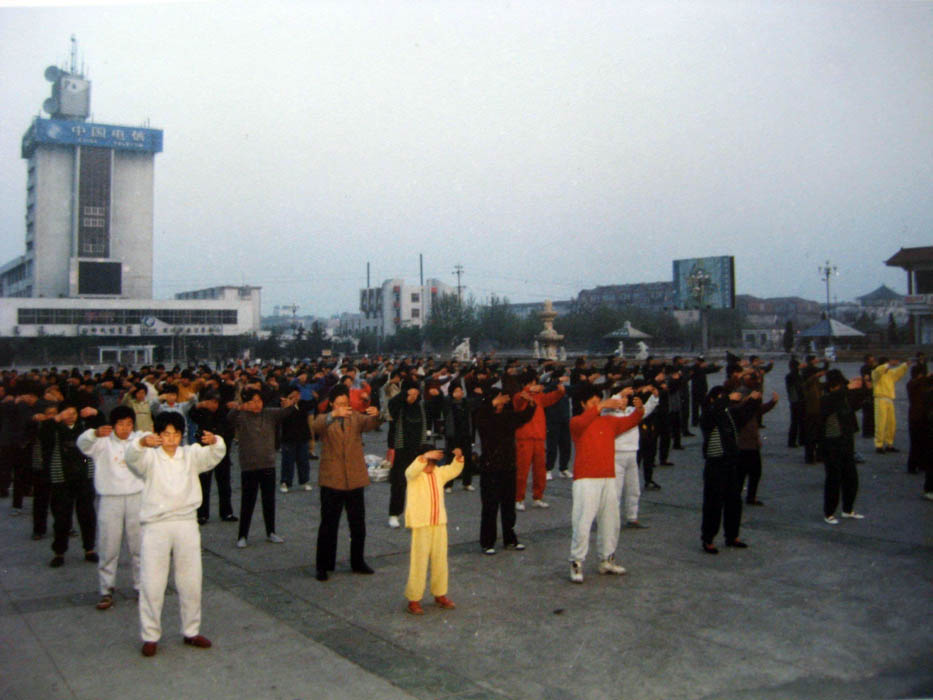 【明慧网二零一零年五月七日】上个世纪九十年代,法轮大法在山东省胶州市迅猛发展,广大修炼者被大法玄奥的法理、快速提高道德水准和强身健体的神奇功效所折服,参加集体晨炼的学员人数激增。当时,市内有十几个上规模的炼功点,其中市人民广场大法炼功点(附照片)是市内较大的炼功点之一,成了一道最靓丽的风景线,吸引着人们的目光,证实着大法的美好。照片摄于九九年春季的一天早晨。
