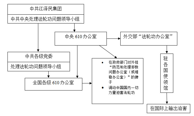 | 【明慧网二零一零年六月十三日】美国国会在2010年3月16日,以412票赞成、1票反对通过了第605号决议案,要求中共立即结束对法轮功学员的迫害、监禁、酷刑及释放所有被关押的学员,并敦请美国总统及国会议员关注此法轮功学员迫害事件。该议案发起人罗斯莱亭恩议员,在投票前表示“(中共)系统杀害法轮功学员,以获取他们的器官,这残忍得几乎令人无法想象”。决议案要求立即废除江泽民为“消灭”法轮功而下令成立的非法机构“610”办公室。 美国国会决议案要求废除的“610办公室”,是中共内部的重点保密单位,是凌驾于宪法之上的中共迫害法轮功的最高权力机构和最得力的政治恐怖工具,是个从中共中央常委会到最基层(城市的街道和农村的村)每一级中共政权中迫害法轮功、超越公检法、不断发展、由临时变为常设、由职责单一迫害法轮功变为用多种功能做掩护、实质由党委掌控、上层政权极力回避、基层政权毫不掩饰的特务组织、非法机构。其功能是组织、策划、密谋、指挥各种迫害行动,负责迫害法轮功的所有事务,是系统迫害法轮功的总指挥部,所犯下的各种罪行触目惊心,罄竹难书。  610及其指挥迫害概括示意图说明:610办公室是中共党务系统内部的秘密机构,中央“610”办公室对外称“国务院防范和处理邪教问题办公室”,地方“610”办公室对外挂“防范和处理邪教问题办公室”的牌子,也有的地方挂“维稳办公室”的牌子(简称“维稳办”)。此外,在国安、公安、大学、部份中小学、机关和大企业中也建立了相应的“610”办公室。“610”特务在外交、互联网、外资企业、旅游、贸易等等各种行业中,也都一直在干着阴暗、罪恶的勾当。 |