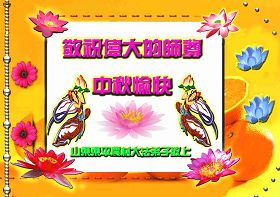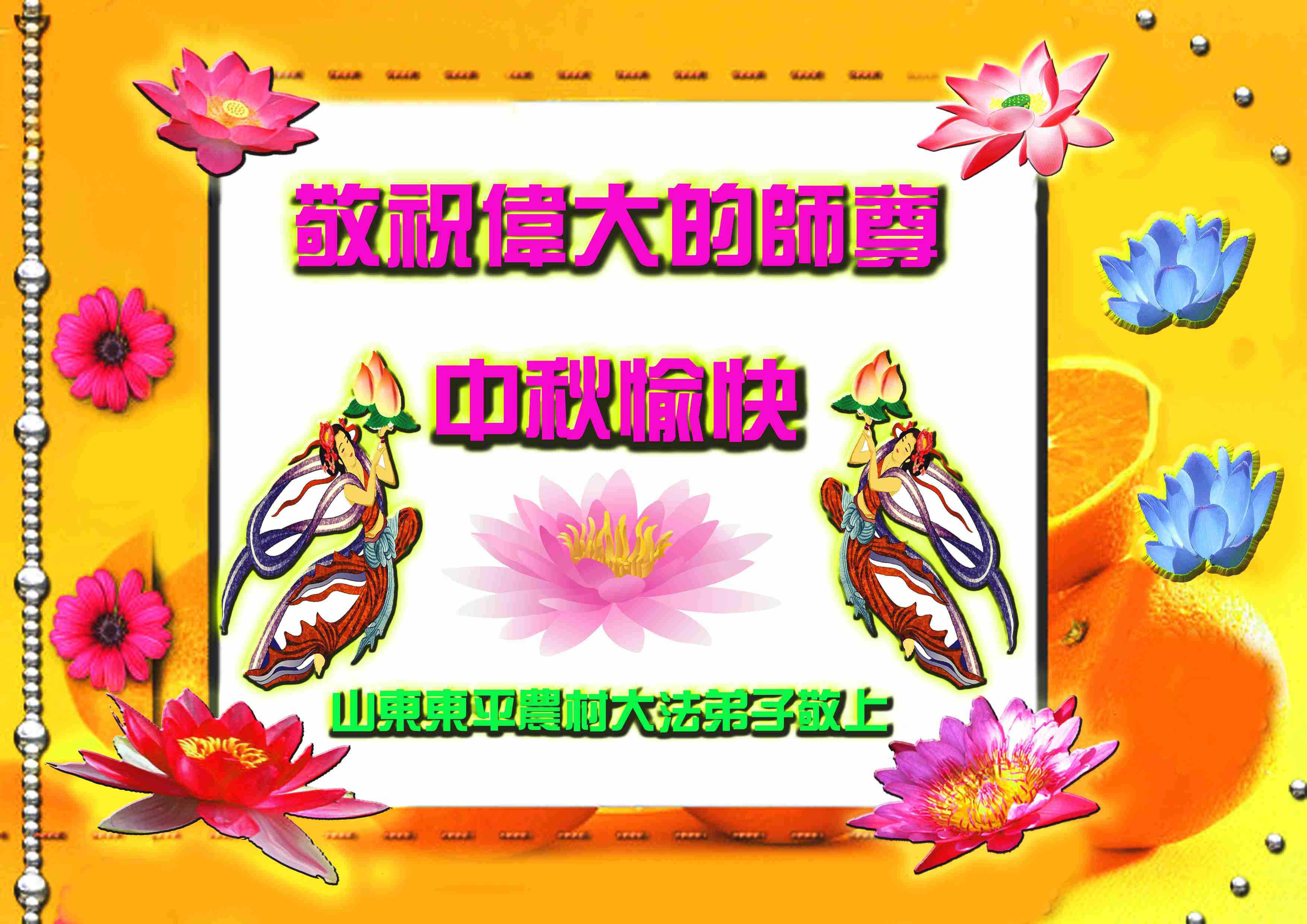 山东泰安农村大法弟子敬上 山东省栖霞市各乡镇全体明白真相得救的众生恭祝李洪志大师中秋节快乐!感谢大师的救度之恩。