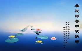 中秋时节 万家团圆 秋风瑟瑟 细雨绵绵 异国他乡 路途遥远 您——大师 为了普度众生,不怕世间险恶艰难 何时回归 何时实现 一个真、善、忍的新纪元 这是大家共同的心愿 大陆河南世人 一飘 二零一零年九月九日 明真相的山钢集团离退休干部、职工恭贺慈悲伟大的李大师中秋快乐!感谢李大师的救度之恩!