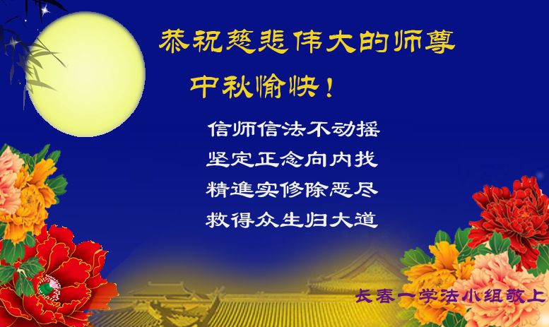 念师恩又逢中秋至 佳节倍念师 圣缘千古事 洪恩寸心知 延边全体大法弟子 长春一学法小组大法弟子恭祝师尊中秋快乐!