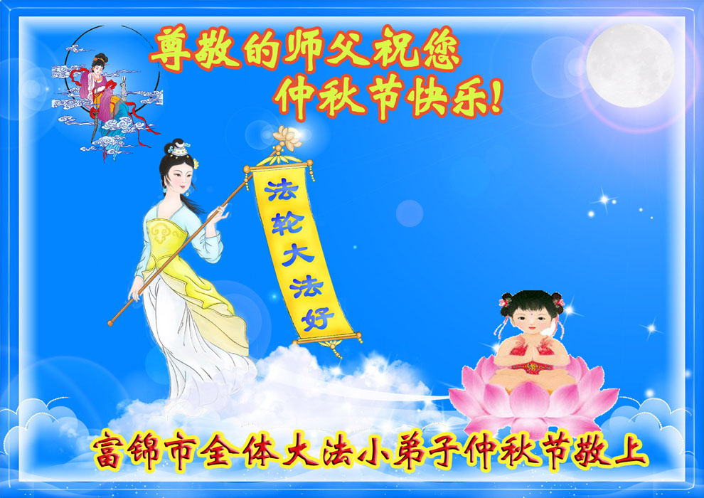 尊敬的师父祝您中秋节快乐!小弟子们想念您! 富锦市全体大法小弟子中秋节敬上 富锦市城乡全体大法弟子恭祝师尊中秋节好!