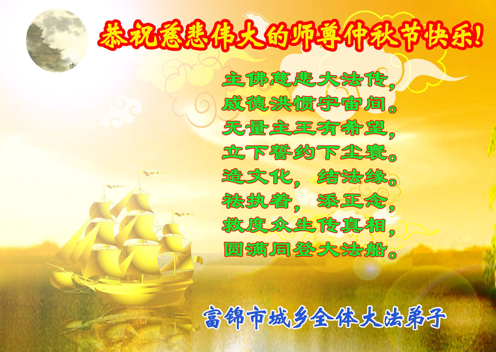 师尊您为弟子操尽了心,弟子一定会努力精進再精進! 富锦市全体大法小弟子恭祝师尊中秋快乐!