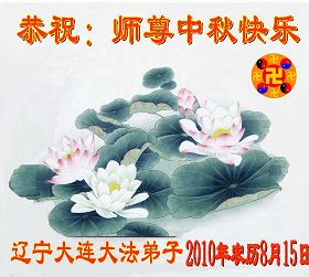 在今后的日子里我们会更加注重学好法,修出真正信师信法的正念,修出无私无我救度众生的慈悲,在任何环境中都要认真做好“三件事”,完成助师正法、救度众生的誓约,不辜负师尊的慈悲救度! 齐齐哈尔市公务员系统大法弟子合十敬上 二零一零年九月十九日 辽河油田全体大法弟子恭祝慈悲伟大的师尊中秋快乐!!