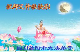 我是富锦市大法小弟子,我还有许多的执着心没去,比如欢喜心、贪吃贪玩,但最强烈的执着心还是妒嫉心。连妈妈给小同修的妹妹几双我穿小了的鞋子我都特别生气,心想凭什么我的鞋要给别人穿,不情愿的给她了。后来妈妈说:“你咋没有同情心啊?等到圆满那天能带走啊?我终于明白了。当然在生活中会遇到许许多多考验我心性的事情,但我一定要努力去掉自己的执着心,争取早日跟师父回家。在此祝师尊中秋节快乐!谢谢师父安排我修炼大法。 富锦市一女大法弟子敬上恭祝慈悲伟大的师尊中秋节快乐!