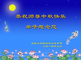 北京大学炼功点大法弟子恭祝师尊中秋快乐!