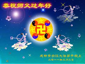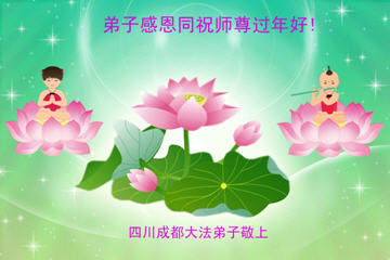 师父辛苦了。成都所有大法弟子一定时时向内找,互相协调配合好,形成一个圆容不破的整体,在学好法、发好正念的基础上,抓紧讲真相多救人,不负师父的慈悲苦度。 成都大法弟子一家恭祝慈悲伟大的师父新年快乐!