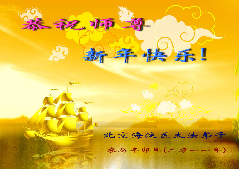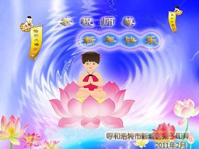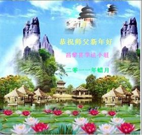 师率众王来人间, 三界已定正法传。 广度众生心归正, 学法修心必在先。 弟子牢记师教诲, 实修大法真、善、忍。 助师正法了洪愿, 圆满随师回家园。 二零一一年一月三十日 北京海淀地区一学法小组全体大法弟子向师尊拜年!