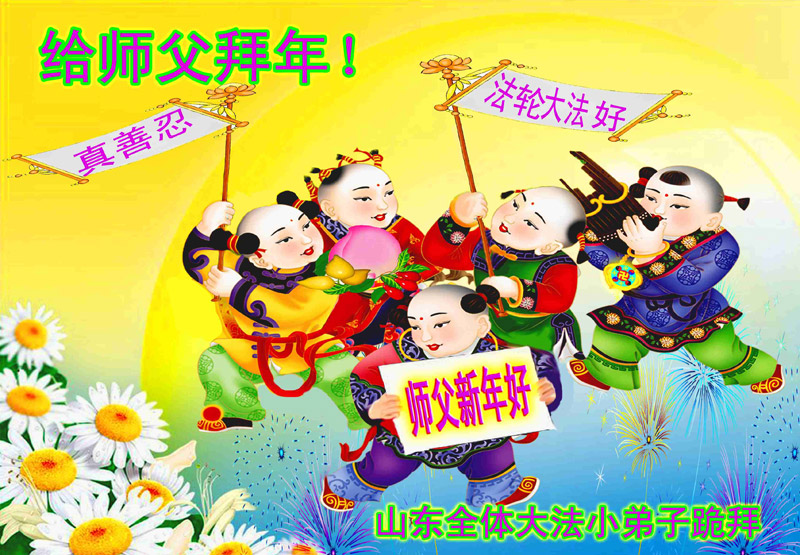 弟子们想念师父! 潍坊市潍城区大法弟子恭祝伟大的师尊过年好!