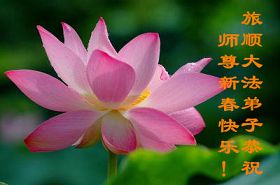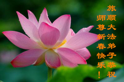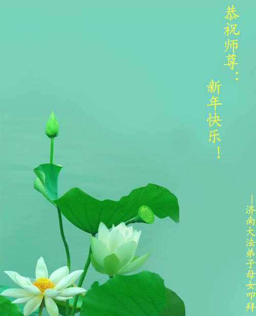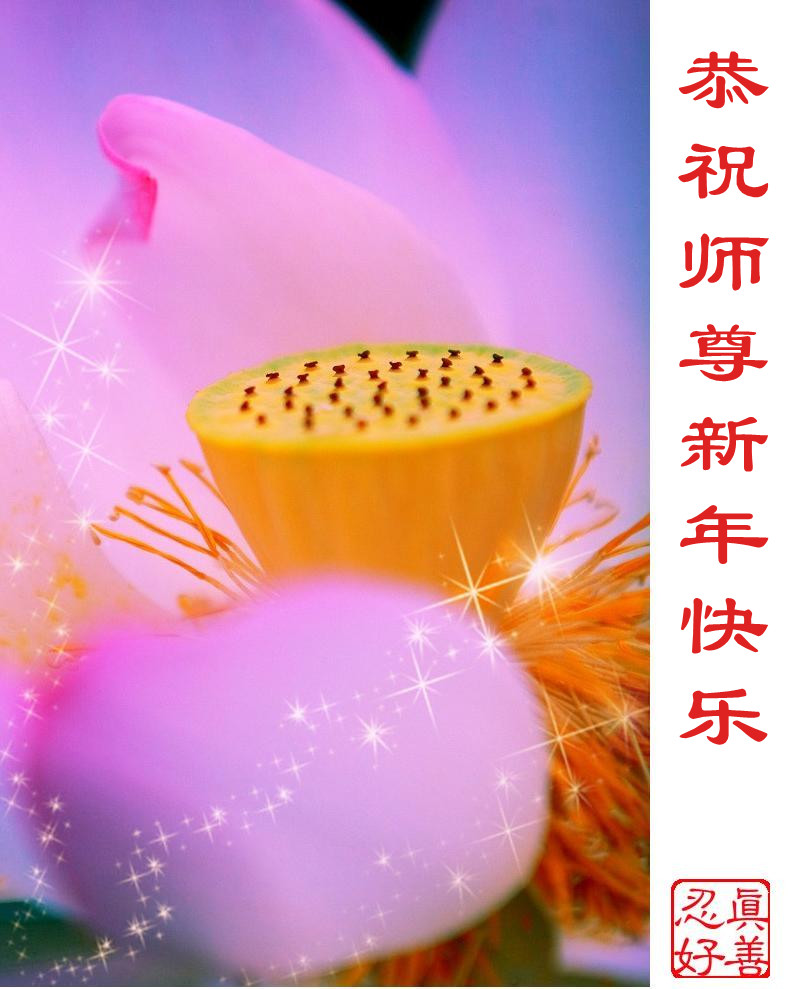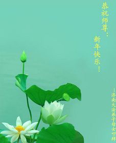 净莲朵朵师尊栽 清芬淡淡云天外 弟子叩谢救度恩 助师正法志不改 寰宇更新扫阴霾 三事做好不懈怠 恭祝师尊新年好 多份欣慰笑颜开 齐齐哈尔市碾子山大法弟子恭祝师父新年快乐!