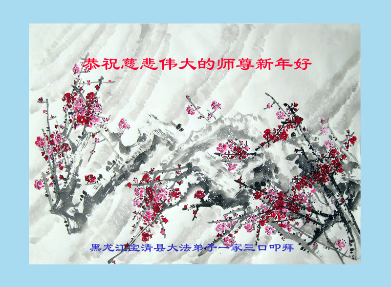 几次提笔几次放下,不知如何表达对伟大师尊的感激?!几次来到师尊的法像前却又离开,不知如何表达弟子辜负师尊时的愧意?!几次手捧经书又放下,不知如何表达内心对慈悲伟大师尊的无限崇敬?!千言万语汇成一句:弟子叩拜慈悲伟大的师尊过年好! 黑龙江宾县一家三口大法弟子敬祝师尊新年快乐!