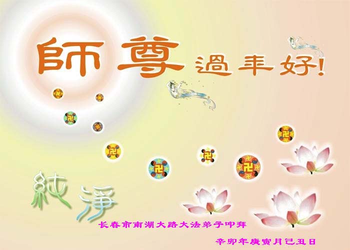 我们想念师尊的心愿无法用语言文字表达!因为我们全身心都沉浸在无边浩荡的佛恩之中,每时每刻都在师尊的庇护下净化着心灵、坚定着正念、讲清真相救度着世人。我们在神的路上走的每一步都是师尊给我们安排好的。在新的一年里我们会更精進实修、更彻底的去掉人心,让师尊多些欣慰! 长春大法弟子恭祝师父新年好!