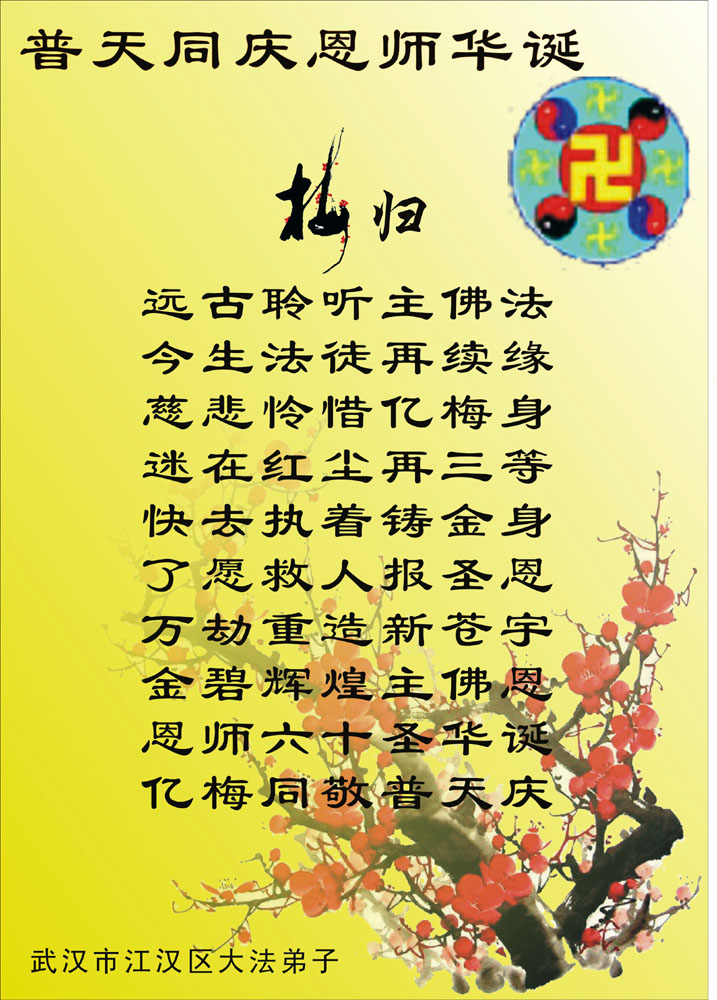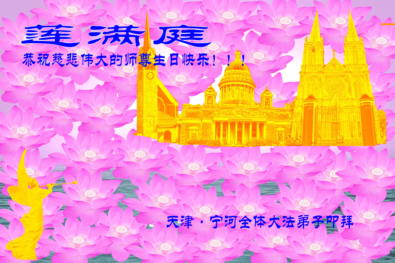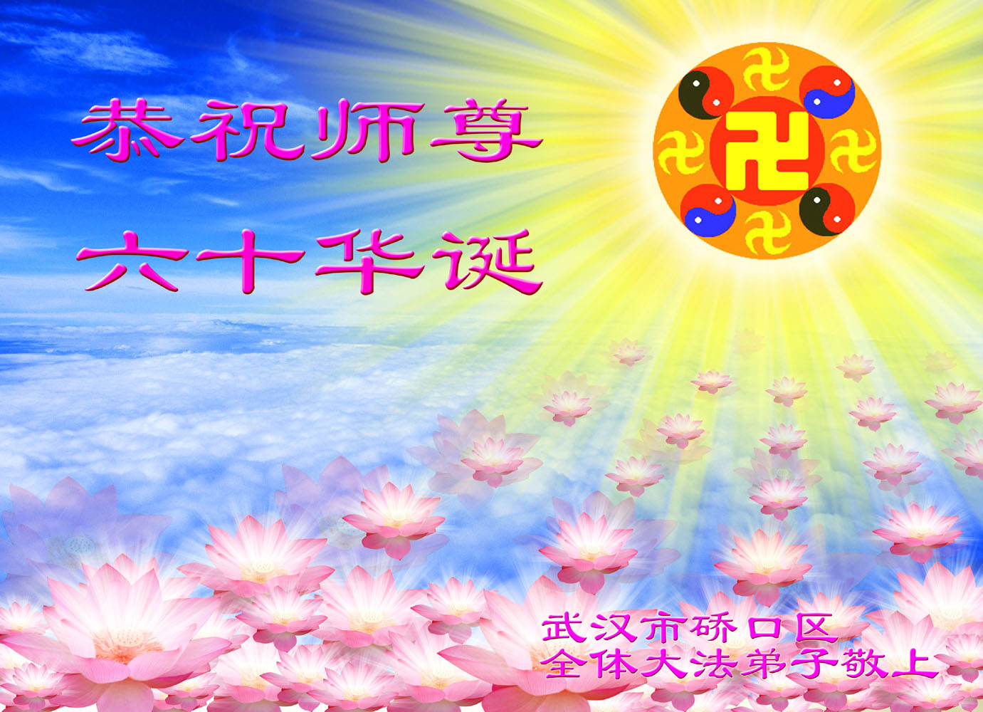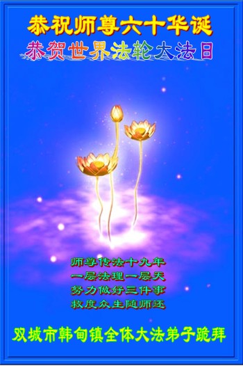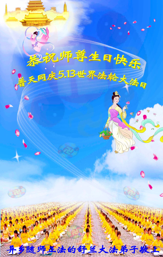 吉林省抚松县全体大法弟子恭祝师尊生日快乐!山东东营胜利油田教育界大法弟子恭祝师尊六十华诞!甘肃兰州大法弟子创作刺绣:普天同庆——祝师尊六十华诞!甘肃兰州大法弟子的美术作品“莲”——祝师尊六十华诞!武汉市江汉区大法弟子恭贺师尊六十华诞!天津宁河大法弟子祝福慈悲伟大的师尊生日快乐!江苏省淮安市全体大法弟子恭祝师尊生日快乐!广东省揭东县全体大法弟子恭祝师尊生日快乐!山东诸城全体大法弟子恭祝慈悲伟大的师尊生日快乐!攀枝花全体大法弟子恭祝慈悲伟大的师尊生日快乐!恭祝师尊六十华诞!庆祝世界法轮大法日!天津宁河全体大法弟子恭祝师尊生日快乐!广东省揭阳全体大法弟子恭祝师尊生日快乐!辽阳大法弟子祝师父生日快乐!承德全体大法弟子恭贺师尊华诞!恭祝慈悲伟大的师尊生日快乐!成都理工大一学法小组大法弟子恭祝慈悲伟大的师尊生日快乐! 恭候伟大的师尊生日快乐!弟子愿师尊少一份操劳,多一份欣慰。 大陆一学法小组全体大法弟子 喜迎慈悲伟大的师尊六十华诞,江苏淮安弟子恭祝师尊生日快乐!