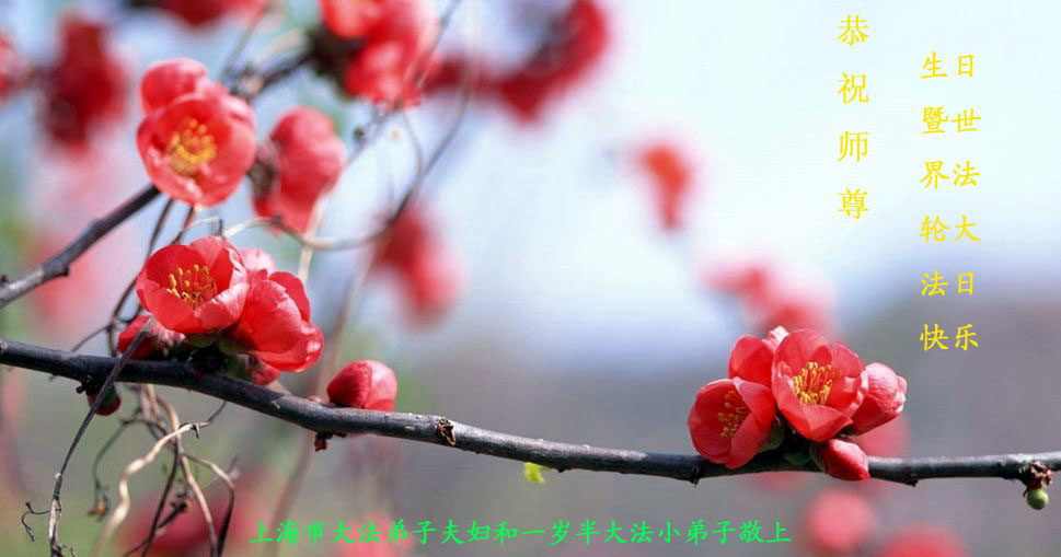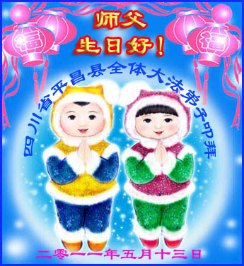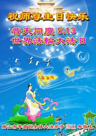 师尊的救度之恩无以为报,惟有精進,做好三件事,多救众生,兑现誓约,圆满随师还。 石家庄大法弟子祝慈悲伟大的师尊生日快乐!石家庄大法弟子 恭祝师尊生日快乐!内蒙古兴安盟全体大法弟子叩拜师尊,恭祝师尊生日快乐! 长春大法弟子恭祝师尊生日快乐!同贺世界法轮大法日! 恭祝伟大慈悲的师尊生日快乐!主佛慈悲正大穹, 五千轮回在人中; 今朝又逢诞辰日, 天上人间同称颂。 大法开传“五•一三” 正天正地正苍穹; 永世不忘主佛恩, 恭祝师恩宇宙同! 济南大法弟子一学法小组恭上 辛卯年壬辰月庚子日 黔西县全体大法弟子怀无比崇敬的心情恭祝师尊生日快乐!在这宇宙更新的时刻,是您世上最伟大的师父,挽救苍宇宇宙大穹!救度众生!我们也无法用人间语言表达对师父的报答! 在此我们借明慧一角恭祝师父六十华诞!祝世界513法轮大法日!! 贵州省黔西县全体大法弟子呈上 唐山市丰南区全体大法弟子祝师尊生日快乐!黔西县各乡镇全体大法弟子恭祝师父六十华诞及513法轮大法日!黔西县各乡镇全体大法弟子恭祝师父生日快乐! 师父:您好! 感谢您对我们的慈悲苦度!多学法做好自己该做的三件事向内找、让师父您放心!随师父回家! 黔西县各乡镇全大法弟子恭祝 大陆一家十六位大法弟子恭祝师尊生日快乐!江苏淮安三弟子携家人跪拜师尊!天津宁河一家三口叩拜慈悲伟大的师尊生日快乐!沈阳市铁西区大法弟子恭祝慈悲伟大的师尊生日快乐!普天同庆世界法轮大法日!师尊您辛苦了。我们绝不辜负师父的慈悲苦度,一定勇猛精進,做好三件事,圆满随师还。 2011年4月10日 异乡随师正法的舒兰大法弟子恭贺师尊生日快乐!青岛市大法弟子祝师尊生日快乐!哈尔滨师范大学大法弟子祝师父生日快乐!祝贺世界法轮大法日!感恩师父慈悲苦度 ,努力精進, 做好三件事 , 哈尔滨师范大学大法弟子 青岛大法弟子恭贺师尊生日快乐!四川绵阳大法弟子叩拜师尊!叩拜师恩 圣尊今世一甲轮 下走宇宙转法轮 历经洪劫万般苦 拯救大穹度苍生 师传大法真善忍 弟子坚修救世人 魔难重重终不悔 功成圆满天地行 法徒今日齐祝贺 叩拜师恩圣诞辰! 辛卯年四月八日 四川绵阳大法弟子 沈阳姊妹大法弟子祝师父生日快乐!广州大法弟子敬祝师尊生日快乐!河北平泉全体大法弟子恭祝慈悲伟大的师尊生日快乐!庆祝5月13日世界法轮大法日!河北平泉六岁大法小弟子恭祝慈悲伟大的师尊生日快乐!庆祝5月13日世界法轮大法日!江西九江大法弟子敬祝师尊生日快乐!大连大法弟子祝伟大师尊生日快乐!做好三件事,跟师父回家。 四川营山大法弟子恭祝师尊生日快乐!尊敬的师父您好!在您生日和法轮大法日来临之际,我们更加想念您,诚挚恭祝师尊生日快乐!弟子一定牢记师尊的教诲,珍惜和大法的缘份,坚持以法为师,严格按“真、善、忍”的最高法理扎实的修好自己,继续做好三件事,完成史前誓约,随师尊回家。 2011年4月20日 军转干部大法弟子敬祝师尊生日快乐!黄山市大法弟子祝师父生日快乐!我们日夜想念师父,盼望早日见到师父。在正法到了这值千金值万金的最后时刻,弟子一定不辜负师父的慈悲救度,扎扎实实的修好自己,做好“三件事”,助师正法,救度众生,完成史前大愿。跟师父回家! 郑州大法弟子恭祝师尊六十岁诞辰!普天同庆世界法轮大法日!昌邑大法弟子恭祝慈悲伟大的师尊生日快乐!河北廊坊大法弟子恭祝师尊节日快乐暨五一三法轮大法日!黑龙江省哈尔滨市及双城市二十七位大法弟子敬祝师尊生日快乐!我们一定随师父回家! 黑龙江省哈尔滨市及双城市二十七位大法弟子 2011年4月21日 峡山地区大法弟子恭祝师尊生日快乐!常州大法弟子率全家恭祝师父生日快乐!常州大法弟子率全家:向慈悲伟大师尊问好!感谢师父的慈悲救度!感谢师父的佛恩浩荡! 常州大法弟子率全家叩拜敬上 二零一一年五月十三日 山西省晋城市一小弟子与全家六口修炼人及所有受益的亲属祝师父生日快乐!在这亿载难逢的伟大时刻,用我们的心组成一个祝福:祝师父生日快乐! 山西省晋城市一小弟子与全家六口修炼人及所有受益的亲属跪拜 青岛大法弟子恭祝慈悲伟大的师尊生日快乐!四川遂宁大法弟子恭祝师尊生日快乐!广东潮南区新学员恭贺伟大慈悲的师尊生日快乐!庆贺“法轮大法日”!师尊您好!我是新学员,知道师尊苦度众生,师恩浩荡!我要按师尊的要求做好,努力修炼,成为一名真正的大法弟子。感谢师恩! 青岛大法弟子全家恭祝慈悲伟大的师尊生日快乐!广东潮南区大法弟子夫妻俩恭祝师尊六十华诞快乐!贺诗三首 铭感师恩功 遥望莲台仰师容 铭感救度师恩功 期盼师尊早凯归 新宇神州佛光洪 正气贯斗牛 大法洪传十九秋, 五洲正气贯斗牛。 恶党邪妖亡灭日, 政通人和升歌悠。 庆贺第十二届“法轮大法日” 五.一三日《转法轮》 黑手烂鬼邪妖遁。 “三字真言”救世宝, 新造宙宇新乾坤。 广东潮南区大法弟子珍惜恭贺师尊生日快乐!师尊好!弟子感谢师尊救度之恩,恭贺师尊生日快乐! 四川省平昌县全体大法弟子恭祝慈悲伟大的师父生日快乐!大法好 法轮大法世人敬 五一三日普天庆 洪恩浩荡佛光照 弟子感恩勇精進 二零一一年五月十三日 广东潮南区大法弟子顺琴恭贺师尊生日快乐!在“世界法轮大法日”到来之际,我和家人深深感恩伟大师尊的救度,您为我们付出太多,我无法用语言表达,在今后的日子里,