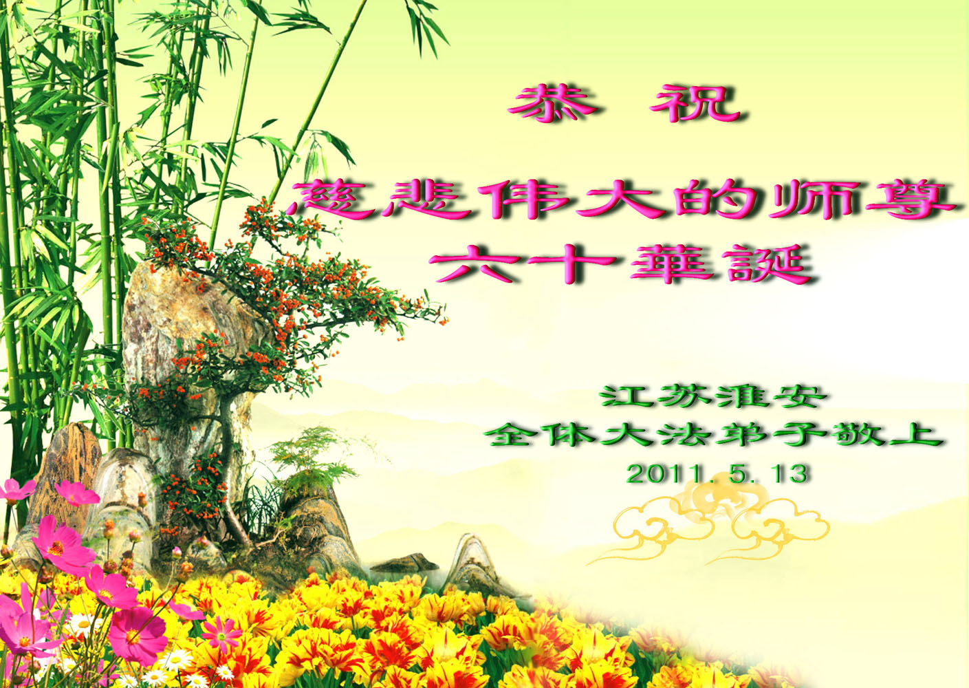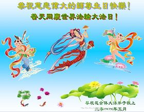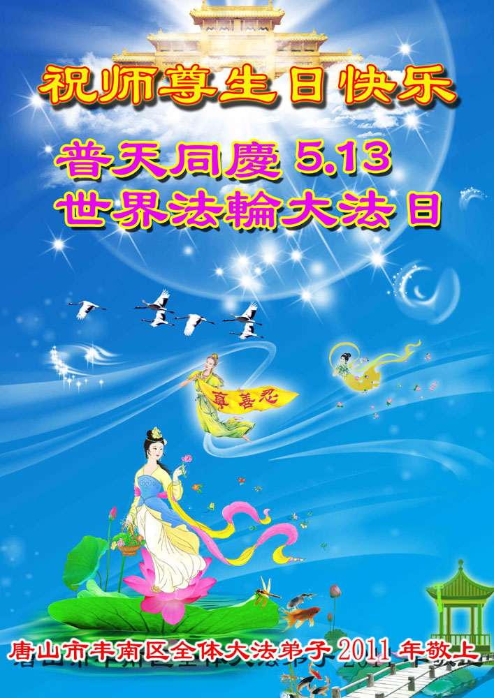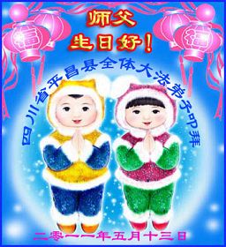 【明慧网二零一一年五月十三日】每年的5月13日,世界各地的法轮大法弟子,都向明慧网寄来贺卡贺词,恭贺师尊华诞,并庆祝“世界法轮大法日”。今日发表的,是中国大陆各地(东北、华北、西北、西南、华中、华南、华东)大法弟子通过明慧网发给李洪志师父和“5.13”世界法轮大法日的祝贺。这里是明慧编辑部已整理出来的大陆地区(151 地)来信汇编: 大陆大法弟子恭祝师尊华诞暨世界法轮大法日