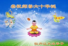 我们一定按照师尊要求,做好三件事,不辜负师尊慈悲苦度。 2011年5月12日 牡丹江大法弟子恭祝师尊六十华诞!