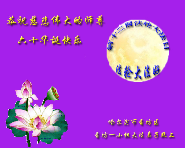 哈尔滨市香坊区香坊一小组的大法弟子恭祝慈悲伟大的师尊六十大寿快乐!