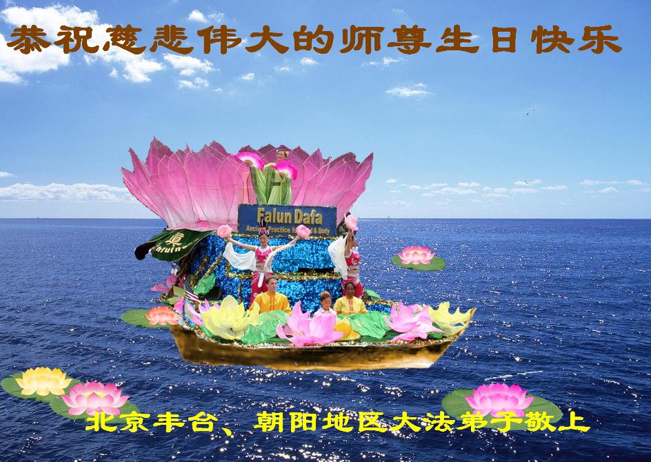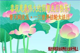 金乌耀世黑云散, 莲花处处现人间, 感师洪恩深似海, 风雨之后果满园! ——青岛市黄岛区大法弟子祝慈悲伟大的师尊生日快乐并贺世界法轮大法日 武汉市东西湖区大法弟子同庆世界法轮大法日